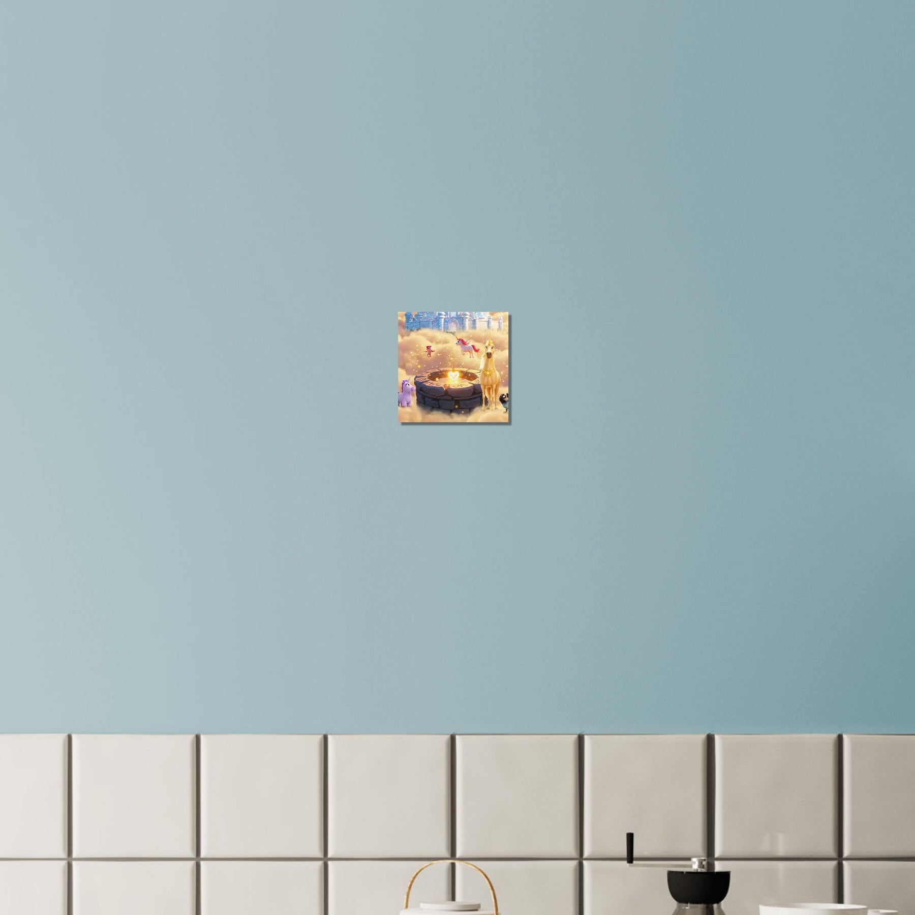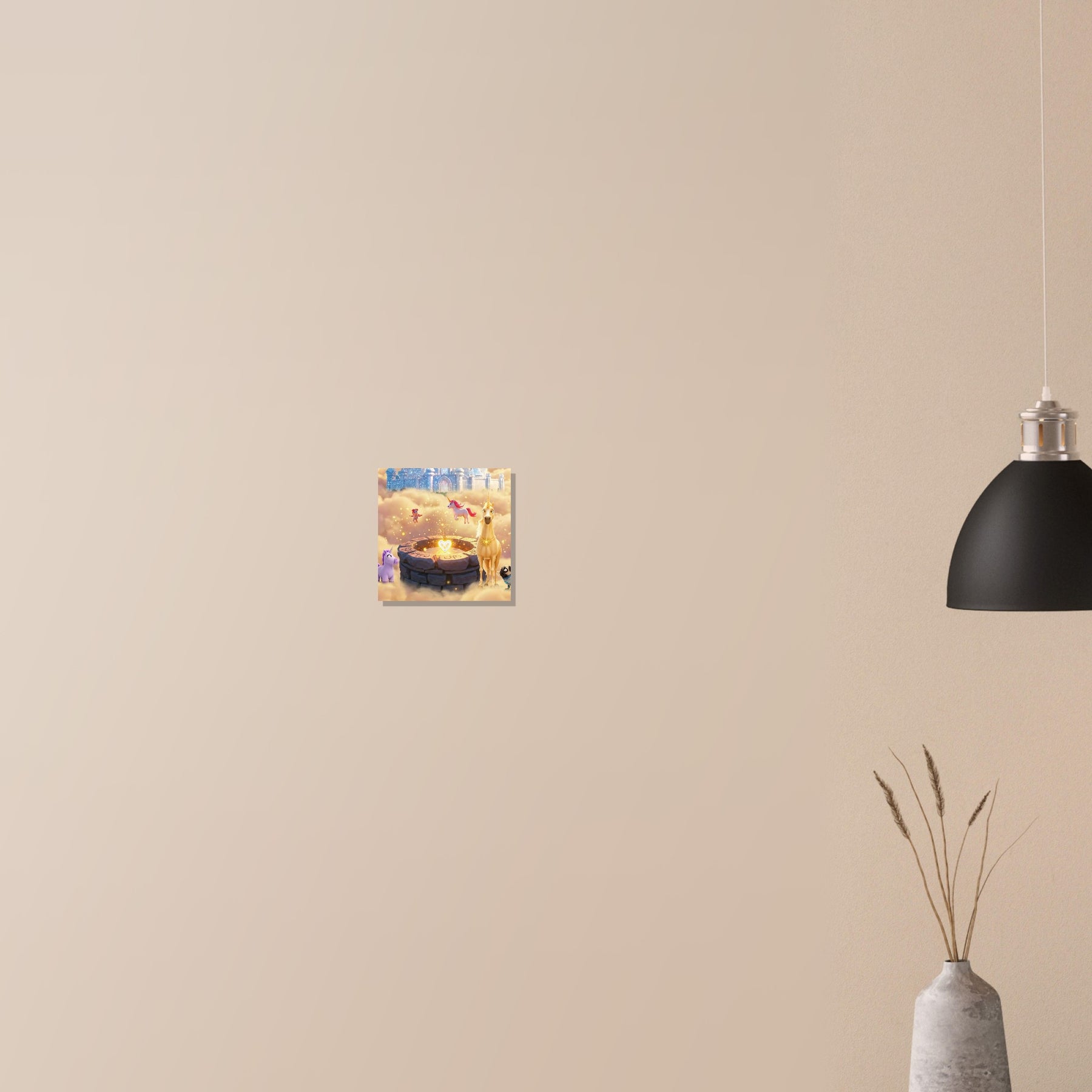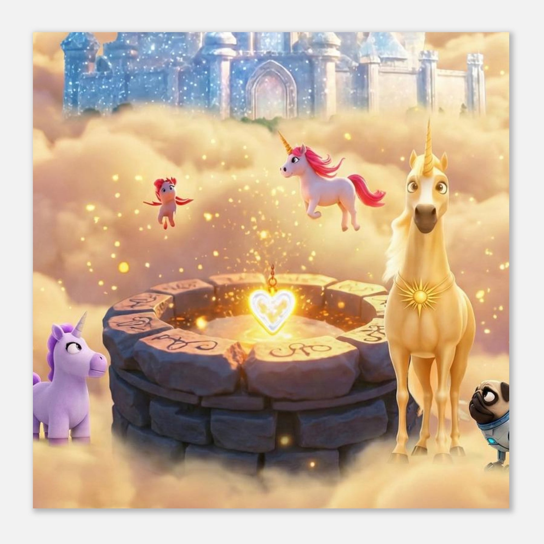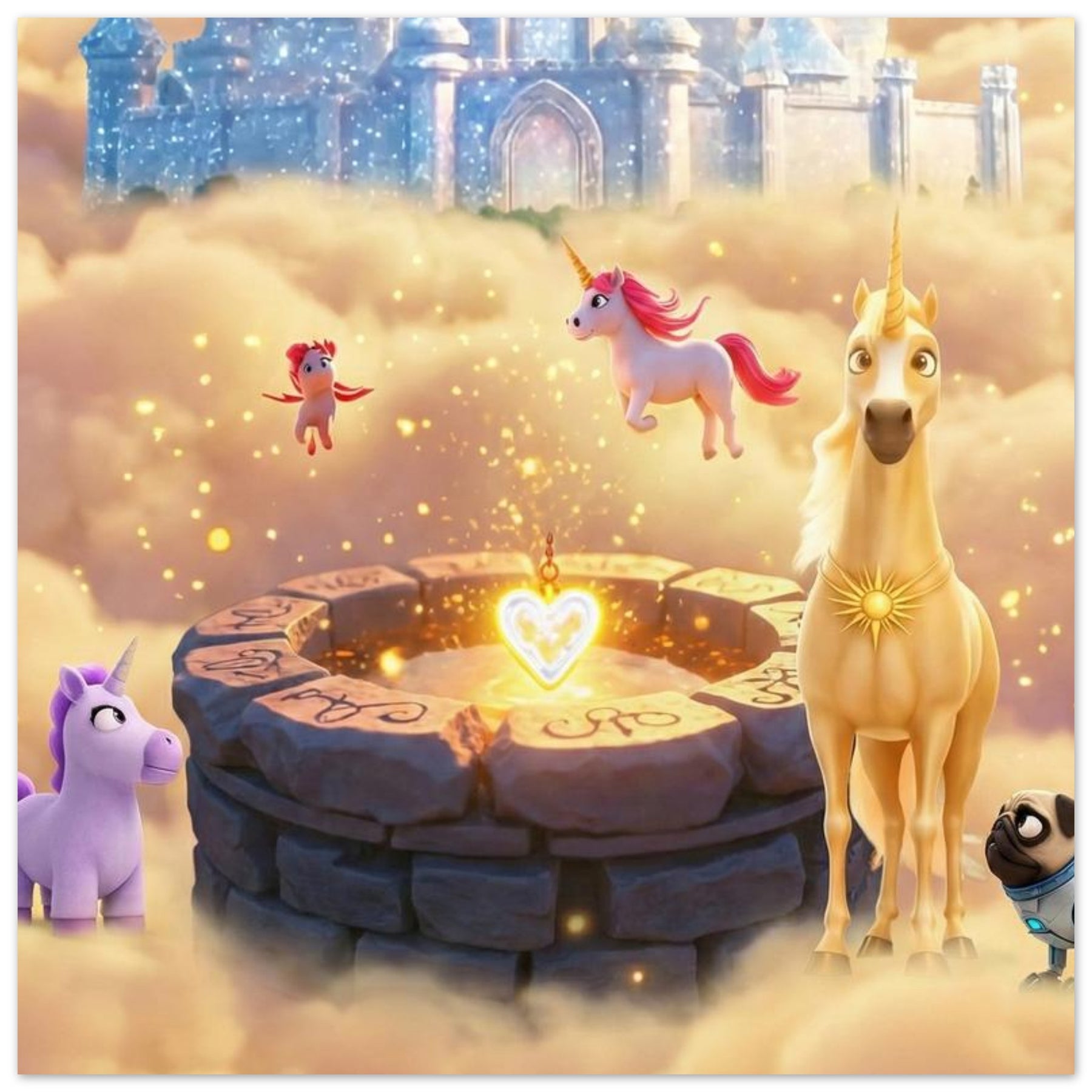 La Historia: Cada noche, Agus y Astrid cierran los ojos y viajan al espacio acompañados por el Comandante Perro Espacial (un heroico pug cyborg), unicornios mágicos y dragones protectores. En su nave roja, aprenden valores como valentía, amistad, superación de miedos y trabajo en equipo. ¡Este póster trae esa fantasía directamente a su habitación!