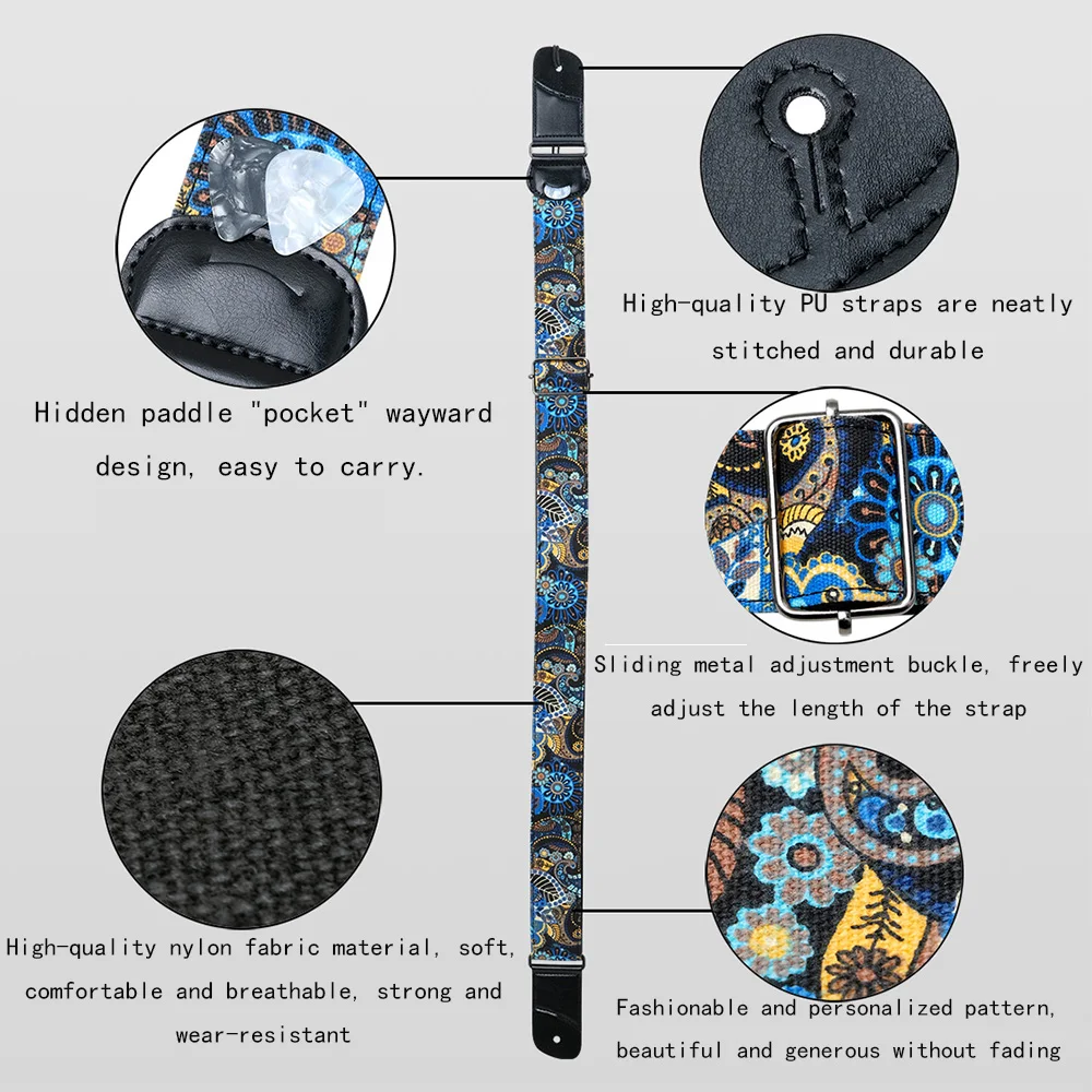 6. Personalized guitar strap, comfortable nylon material, freely adjustable length, sturdy metal buckle, personalized fashion pattern.